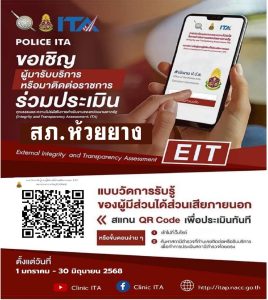 สถานีตำรวจภูธรห้วยยาง ขอเชิญชวนประชาชนทั่วไป ผู้มารับบริการหรือมาติดต่อราชการ ร่วมประเมินคุณธรรมและค
