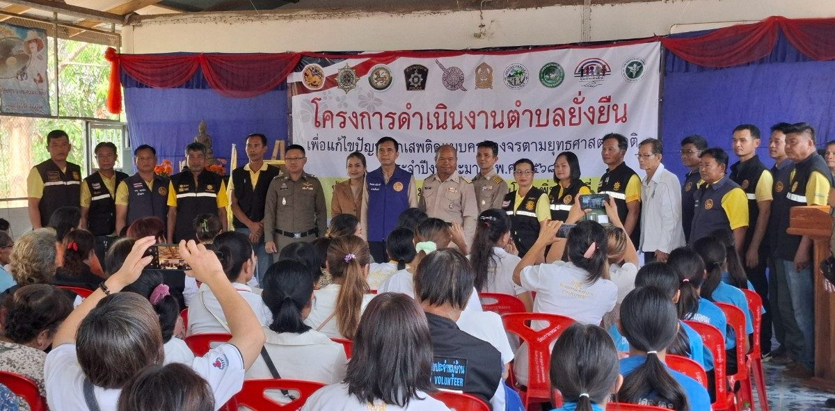 วันที่ 14 มีนาคม 2568 เวลา 10.00 น. พ.ต.อ.ธนะวุฒิ หัสวาที ผกก.สภ.ห้วยยาง พร้อมทชุดปฏิบัติการชุมชนยั่งยืน ข้าราชการตำรวจ สภ.ห้วยยาง ได้ร่วมพิธีเปิดโครงการการดำเนินงานตำบลยั่งยืนเพื่อแก้ไขปัญหายาเสพติดแบบครบวงจรตามยุทธศาสตร์ชาติ ประจำปี 2568 ณ บ้านดอนอุม หมู่ 7 ต.ห้วยยาง อ.คอนสาร จ.ชัยภูมิ โดย นาย ทินพล เฉลิมวสุธา นายอำเภอคอนสาร เป็นประธาน หัวหน้าส่วนราชการผู้นำชุมชนในพื้นที่ตำบลห้วยยาง และประชาชนในหมู่บ้านเป้าหมาย บ้านโดรเพิ่ม หมู่ 1 และบ้านดอนอุดม หมู่ 7 ต.ห้วยยาง อ.คอนสาร จ.ชัยภูมิ หลังจากพิธีเปิดโครงการแล้วเสร็จ ได้ร่วมลงนามใน MOU. หน่วยงานราชการ /MOU. หมู่บ้าน /MOU. ครัวเรือน หลังจากทำการลง MOU.แล้วเสร็จ ได้ทำการตรวจปัสสาวะผู้นำชุมชน และประชาชนที่มาเข้าร่วมพิธีเปิดโครงการ ผลการปฏิบัติได้รับความร่วมมือจากผู้นำชุมชน และ ประชาชน เป็นอย่างดี