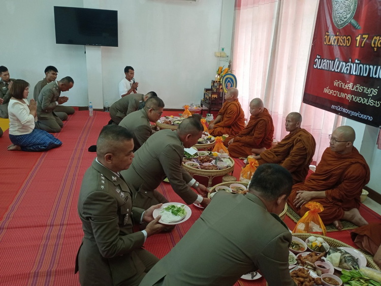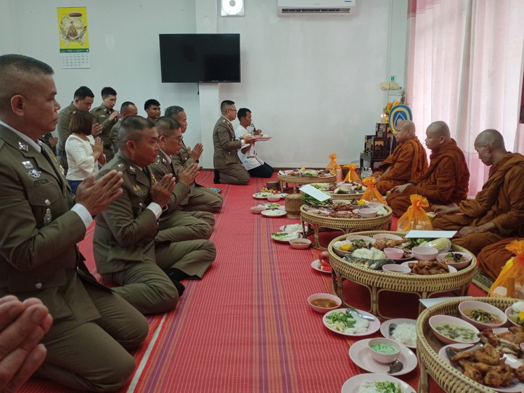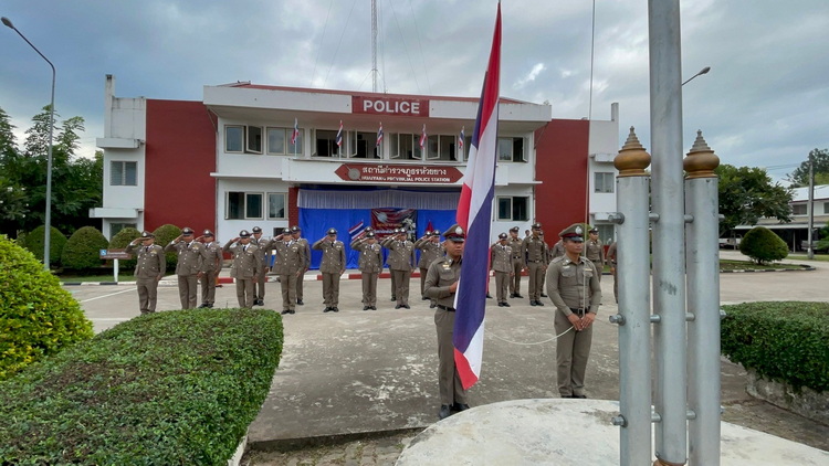 เวลา 08.00 น. ข้าราชการตำรวจเคารพธงชาติ เชิญธงชาติขึ้นสู่ยอดเสา สวดมนต์ไหว้พระ