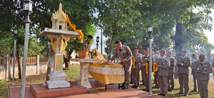 เวลา 07.00 น. ข้าราชการตำรวจทำพิธีไหว้ศาลพระภูมิ